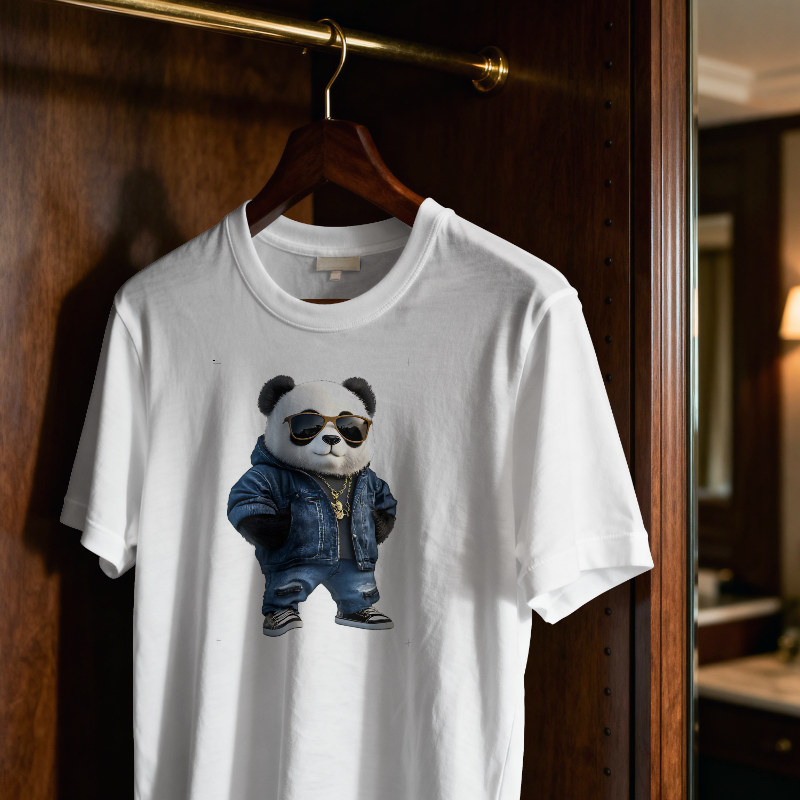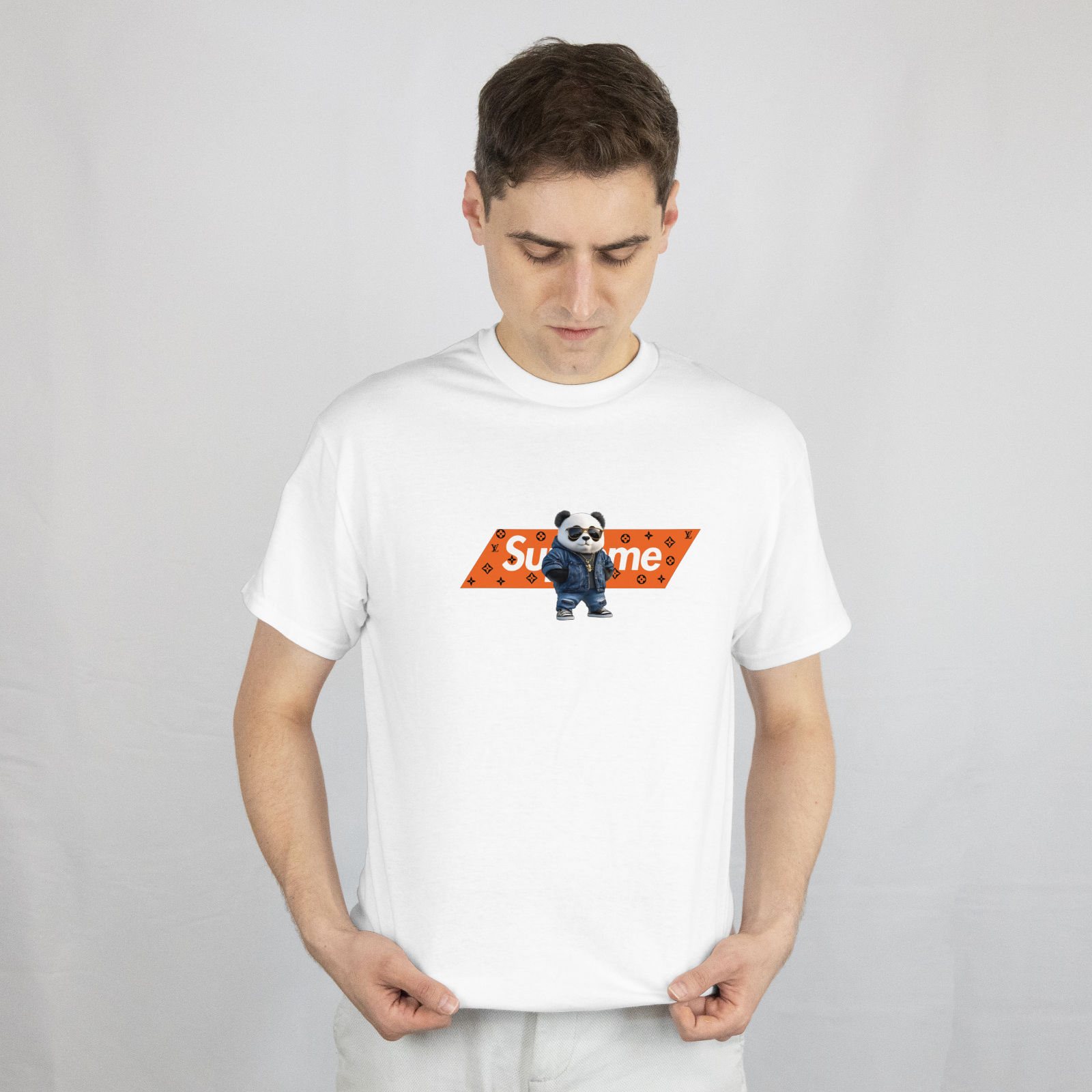 Tricou casual pentru bărbați, realizat din bumbac, cu imprimeu frontal minimalist și personaj tip urs. Un model confortabil, potrivit pentru activități zilnice și ținute lejere.