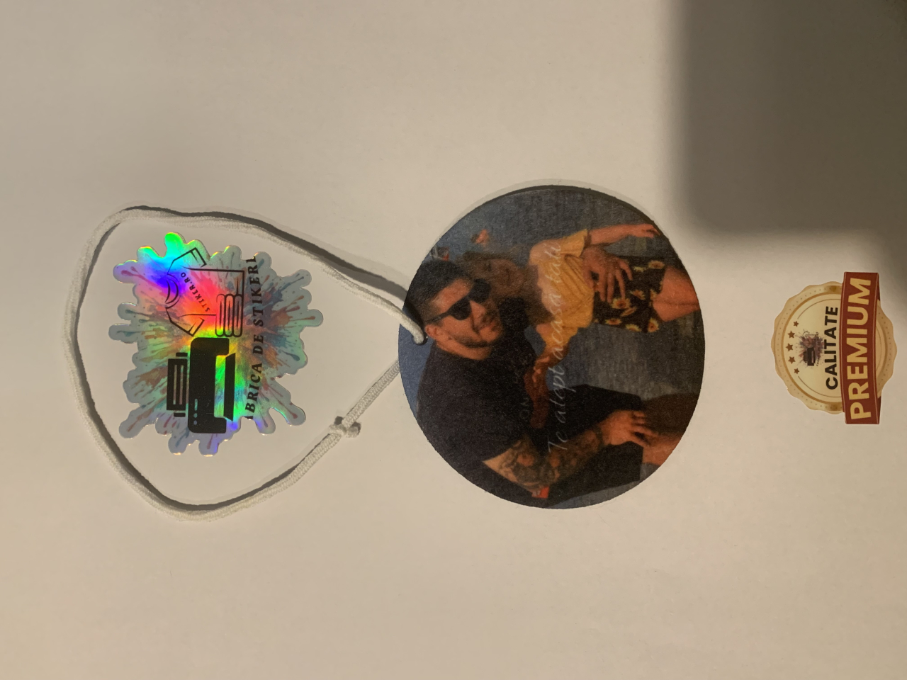Odorizantele pot fi personalizate față-verso cu orice poză dorești: familie, copil, cuplu, animal de companie sau un mesaj special.