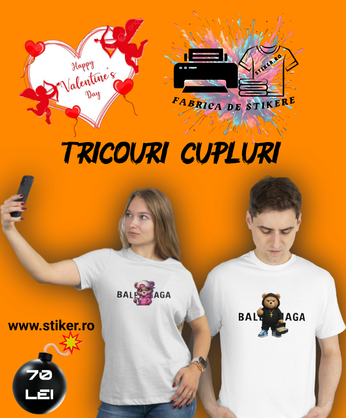Set tricouri pentru cupluri Street– stil matching pentru ea și el ❤️Surprinde persoana iubită cu un set de tricouri pentru cupluri, inspirat din stilul Street. Setul conține două tricouri albe, personalizate cu design modern, ideale pentru cuplurile care vor să poarte outfituri matching.Tricourile sunt realizate din material confortabil, cu print de calitate, rezistent la spălări, potrivite pentru purtare zilnică sau cadou special de Valentine’s Day, aniversări sau alte ocazii.✔️ Set format din 2 tricouri✔️ Mărimi disponibile pentru ea și el✔️ Print clar și durabil✔️ Cadoul perfect pentru cupluri📦 Livrare rapidă în România📲 Comenzi rapide sau personalizare: 0731 583 209